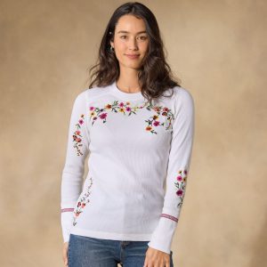 Alight with feminine details our tiered top features cascading ruffle sleeves. appliqued lace. smocked yoke at front and back. tonal embroidery. and scalloped crochet trim. Notch neckline with crochet pompom ties and wooden beads. Cotton. Machine wash. Imported. Exclusive. Sizes XS (0 to 2). S (4 to 6). M (8 to 10). L (12 to 14). XL (16 to 18). XXL (20 to 22). Approx. 25L.