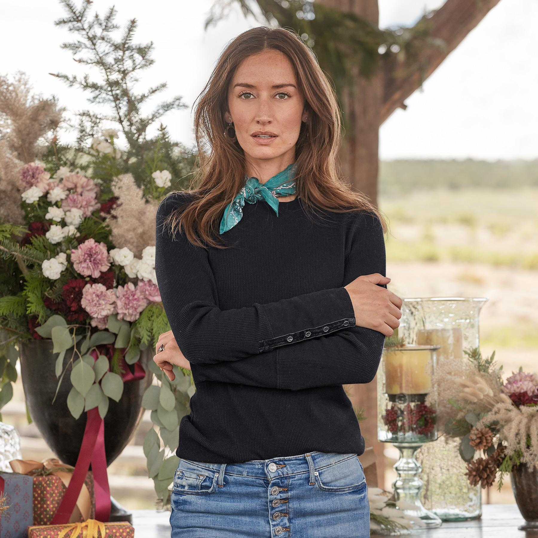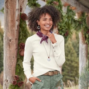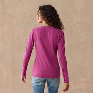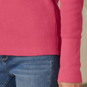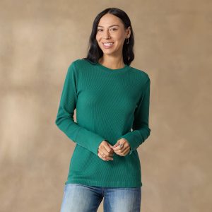 Take our crewneck thermal shirt with wide cuffs. velvet-trimmed and metal-buttoned. and create a go-to wardrobe you’ll wear this season and next. It’s made of soft. waffle-knit cotton with shape-retaining spandex. Machine wash. Imported. Exclusive. Sizes XS (0 to 2). S (4 to 6). M (8 to 10). L (12 to 14). XL (16 to 18). XXL (20 to 22). Approx. 25-1/2L.