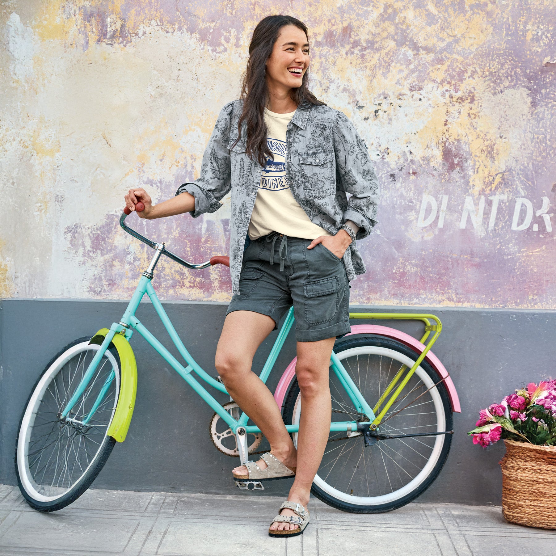 Vintage-inspired faded floral prints bring a touch of nature to this button-down top with pearl snap buttons at the placket. collar and front flap of the patch pockets. Shirttail hem. special back yoke detail. Sizes XXS (00). XS (0?C2). S (4?C6). M (8?C10). L (12?C14). XL (16?C18). Approx. 24l.