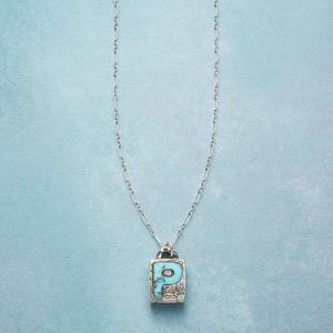 Jes MaHarry adds her personal touch. setting a hand-cut turquoise initial into a rustic bezel etched with joy on the side. love life on reverse. Sterling silver chain; Spring ring clasp. Exclusive. Handmade in the USA. Specify letter. 18l; pendant approx. 7/8l.