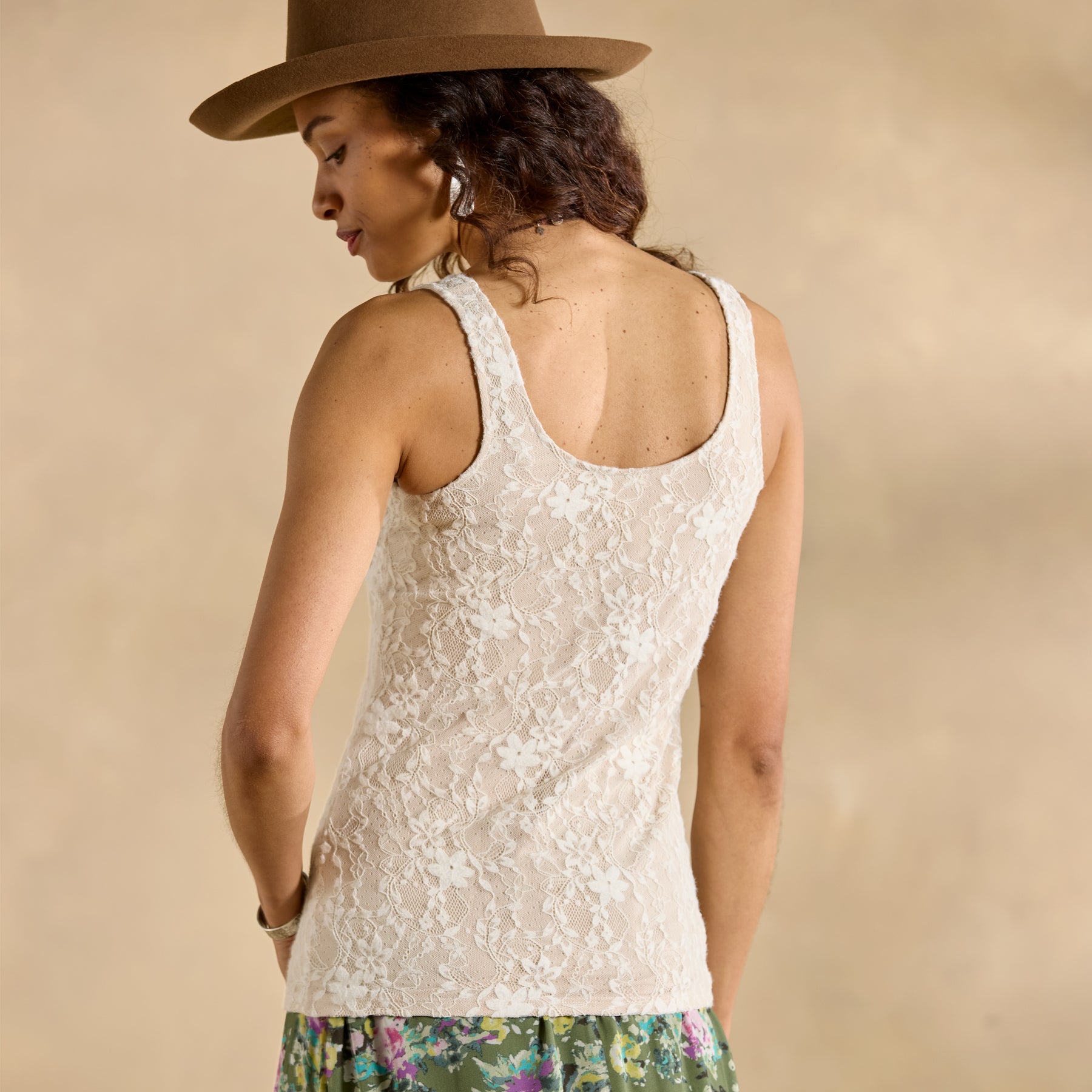 Bold and feminine. our Shae Lace Tank features allover lace details lined in comfortable jersey. with a scoop neck front and back. Nylon/spandex/rayon/. Hand wash. Imported. Exclusive. Sizes XS (0–2). S (4–6). M (8–10). L (12–14). XL (16–18). XXL (20–22). Approx. 24l.
