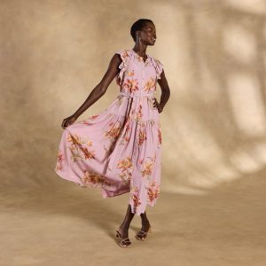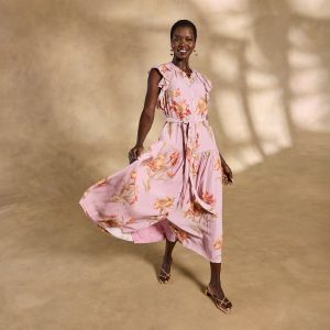 Effortlessly feminine. our Tierra tiered maxi is straight out of a rom-com montage—featuring a demure button front. ruffled neckline and sleeves plus a removable belt. Separate slip. Viscose/cotton. Machine wash. Imported. Exclusive. Sizes XS (0-2). S (4-6). M (8-10). L (12-14). XL (16-18). XXL (20-22). Approx. 53l.